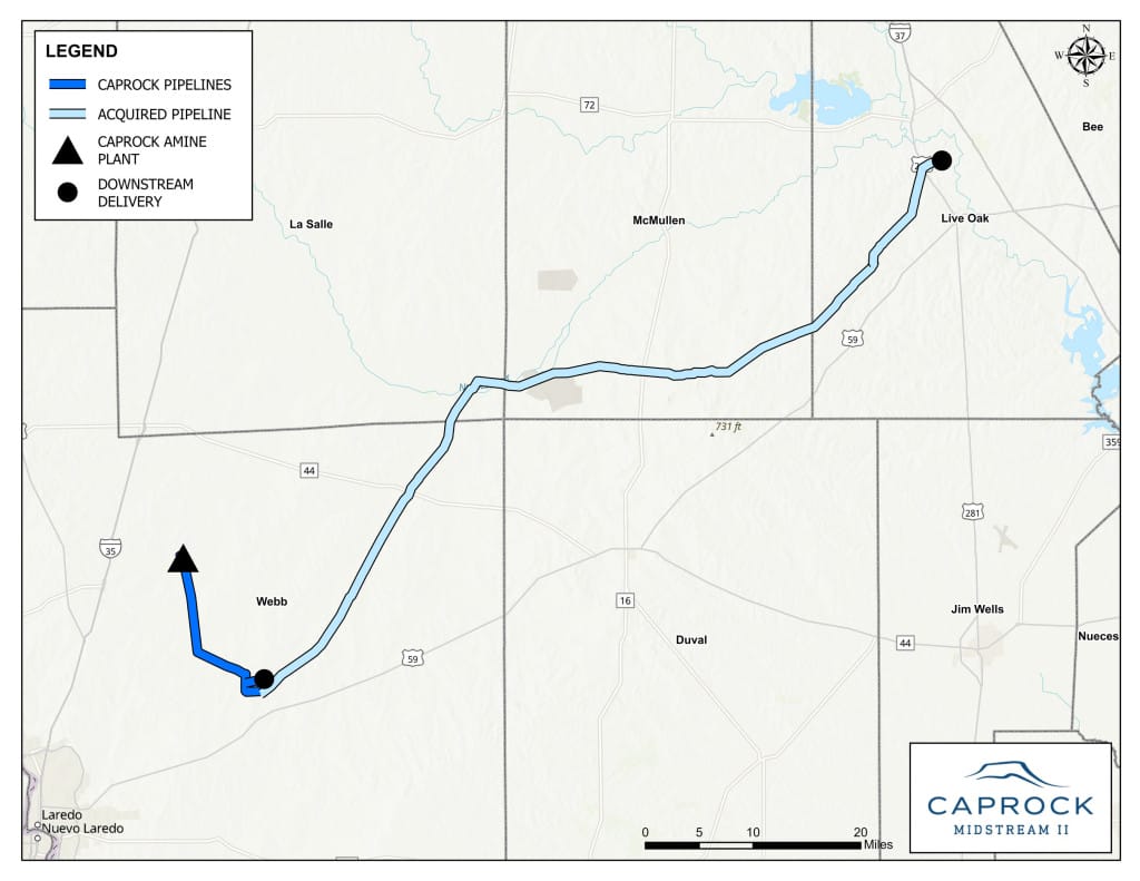 HOUSTON, Nov. 12, 2025 /PRNewswire/ — Caprock Midstream II LLC (Caprock) is pleased to announce the expansion of our operations in South Texas through the purchase of more than 90-miles of 16-inch and 20-inch residue gas pipeline through the heart of the dry-gas window. Spanning from central Webb County through La Salle, McMullen and southern Live Oak Counties and ultimately delivering to the Transco market, the acquisition further strengthens our ability to serve our customers in the region.