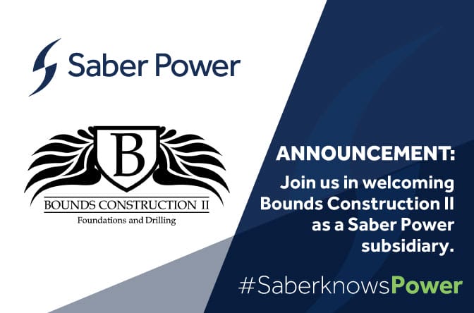 “This transaction strengthens our position as a full-scope infrastructure partner to our clients,” said Brian Bratton, CEO of Saber Power. “Bounds brings a highly skilled team and a proven track record in foundation construction that complements our engineering-led turnkey service capabilities.”