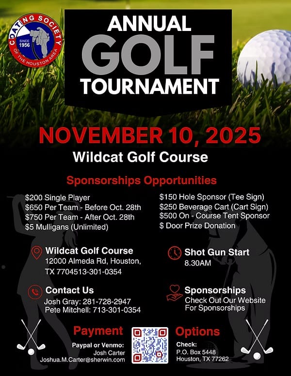 Register for the Coating Society of Houston Golf Tournament November 10, 2025